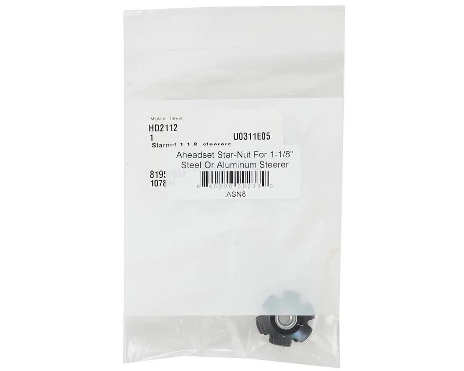 The Aheadset 1-1/8″ Star Nut for 1-1/8″ steel steerer tubes fits some 1-1/4 and 1-1/8″ aluminum bikes.