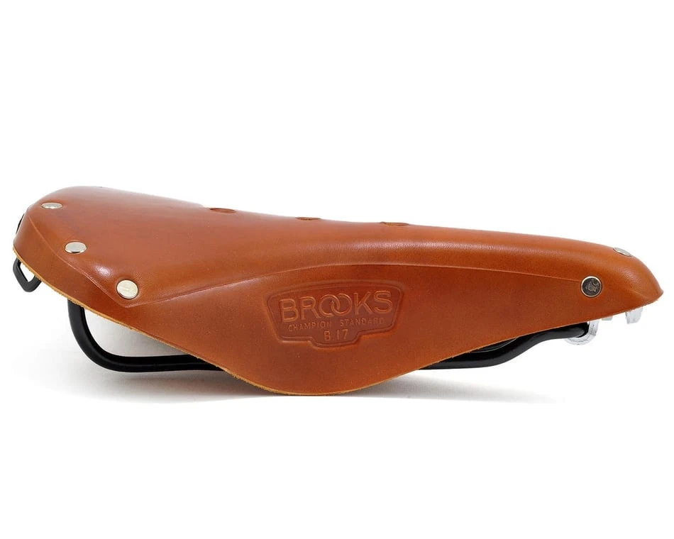 The B17 is Brooks’ flagship model, ideal for long distance sports touring, trekking and all-terrain use. It has been on the market for over 100 years, being featured in as early as the 1898 catalogue. The model is available for gents and ladies: the B17 (gents) and B17 S (ladies). The Standard models feature black steel rails, the B17 Special features copper plated steel metalwork, and the B17 Titanium. Both the B17 Special and the Titanium also feature hand hammered copper rivets.