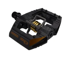 Concave platform-clipless pedal with mud shedding 4-sided entry is designed for enduro riding and racing. Mallet Enduro pedals feature 6 adjustable pins per side, ribbed body for better traction when not clipped in, and chamfered leading edges help reduce rock strikes. Sold in pairs.