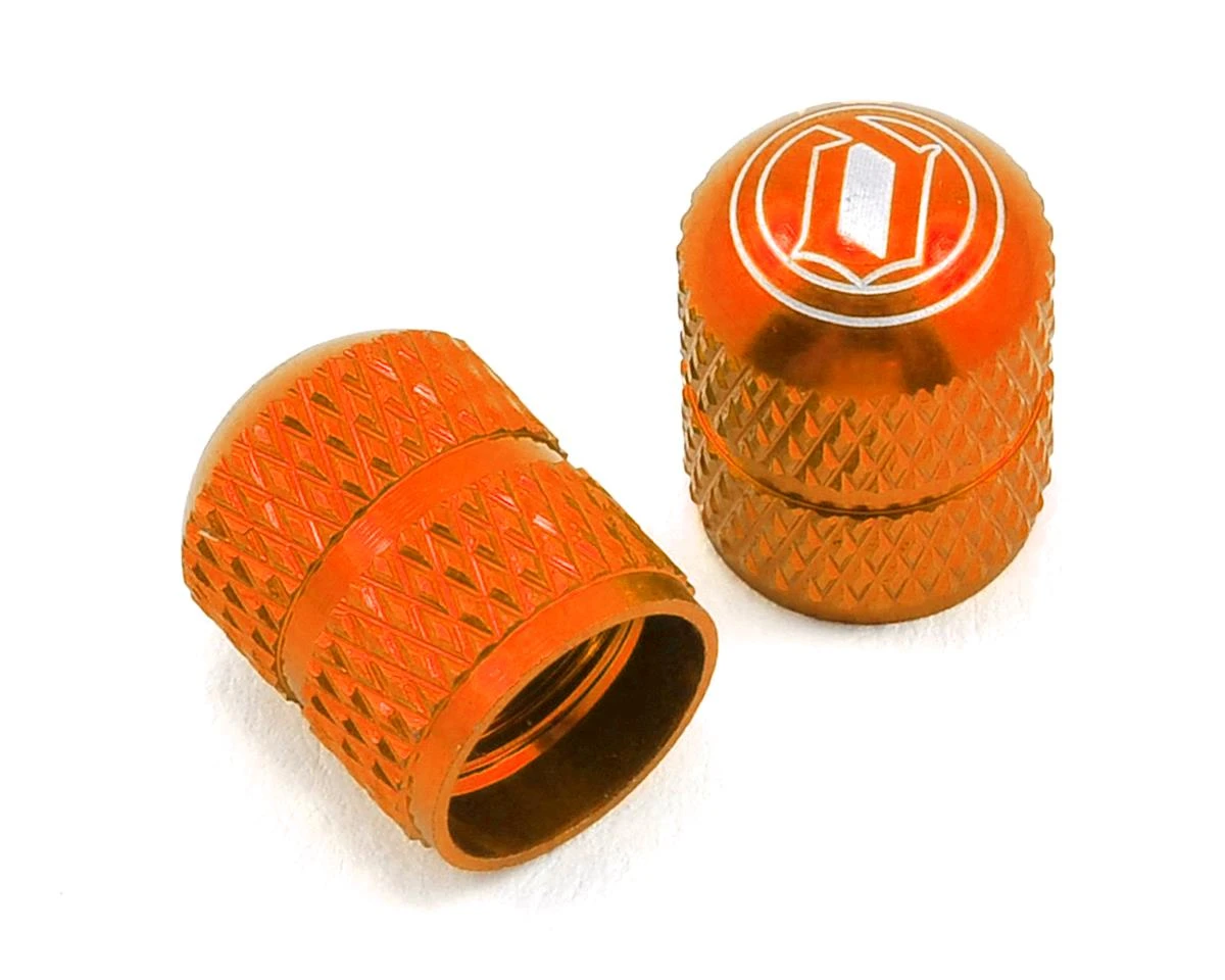 This is a pair of Schrader Valve caps from Deity. Available in anodized colors, this set of valve caps are a fantastic accent piece for any bike.