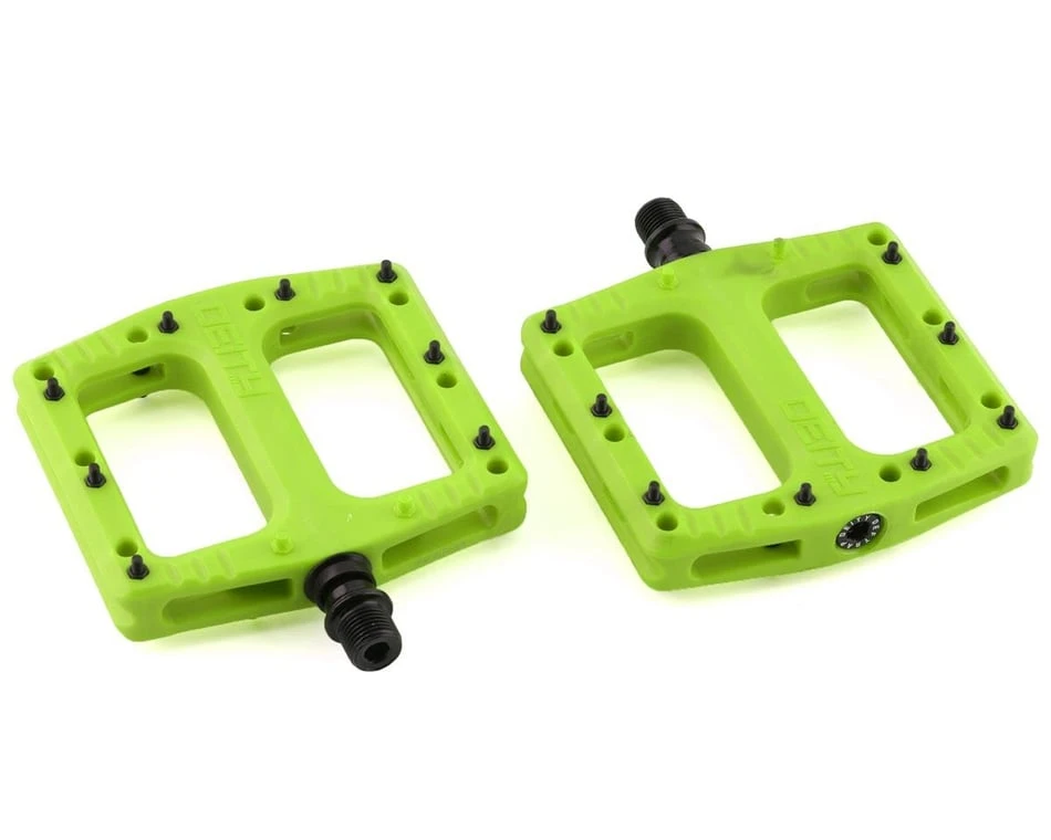 The Deity Deftrap Pedals smash through modern nylon composite pedal barriers and deliver unrivaled performance. A no-offset, symmetrical design aid pedal balance and foot position helping to create a stable and confidence-inspiring ride. Sealed bearings, DU bushings, and a top-tier nylon glass fiber composite further increase the integrity and durability while 8 replaceable chromoly and 2 molded pins ensure that there won’t be any slipping in adverse conditions.