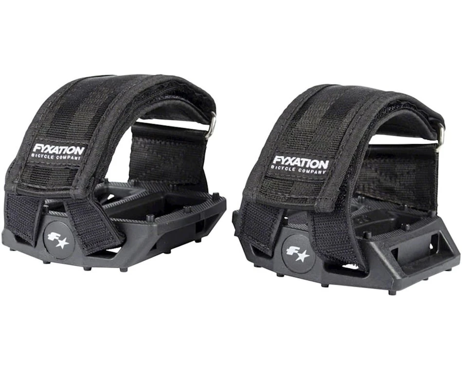 - Fyxation Gates nylon platform pedal paired with Fyxation Gates pedal strap set makes for an affordable user-friendly foot retention system