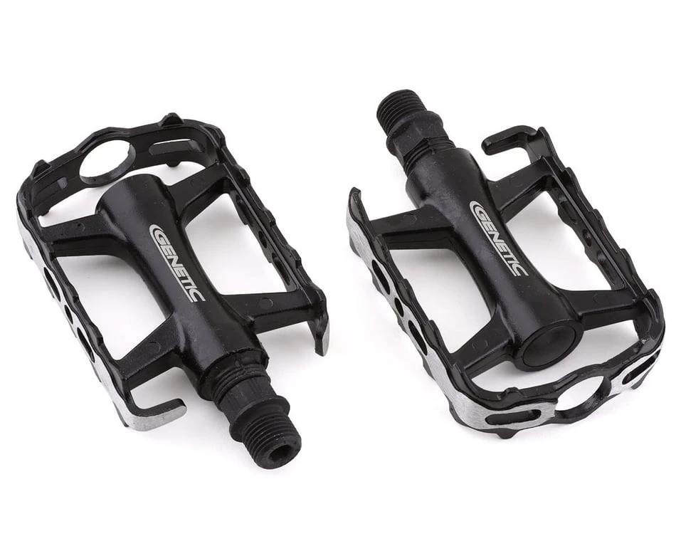 - Lightweight, double-sided cage pedal for use with everyday shoes