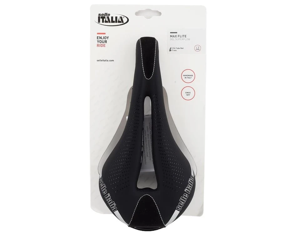 The Selle Italia Max Flite Gel Superflow Saddle is a maximum comfort platform for any road or off-road riding. The proven shape is specifically designed to provide relief and support. The extra padding ensures comfortable seating even at long distances and on rough terrain. The classic Superflow cut-out guarantees minimum pressure on the perineum area. A good choice for bigger riders who welcome the extra base width and padding, or anyone spending long hours in the saddle.