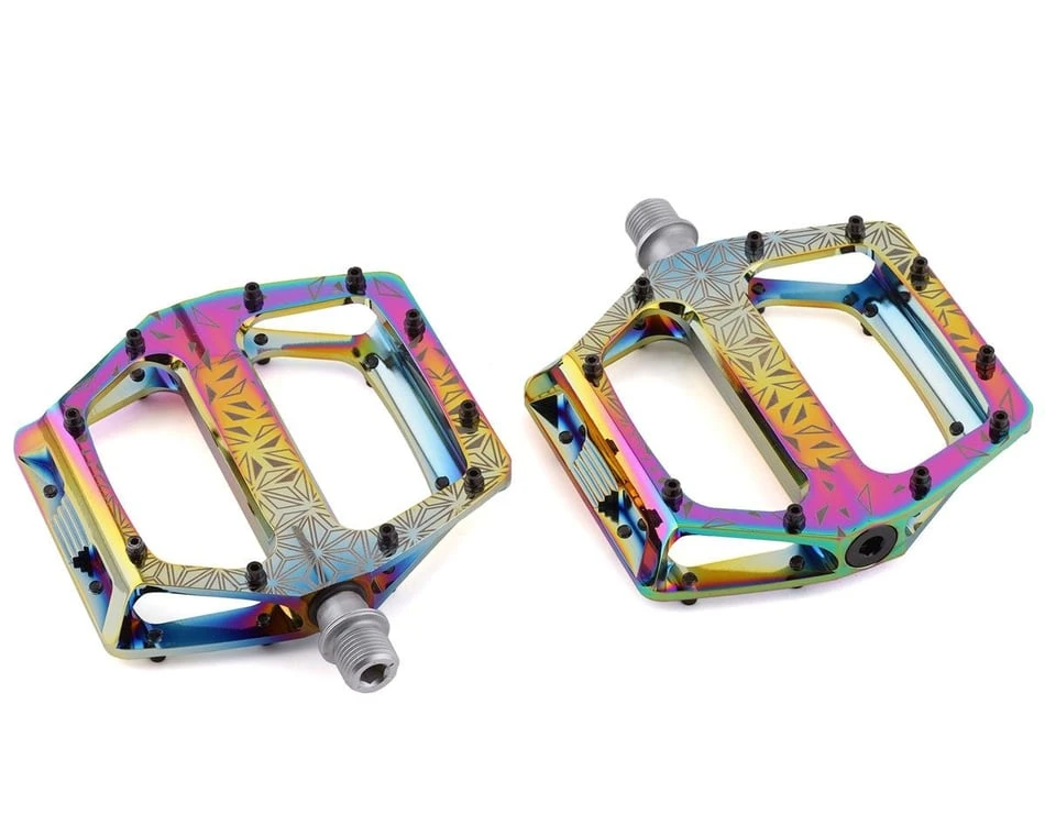 Get ready to fly high with the Krypto DH pedals. Built tough with a CNC machined aluminum body and self-lubricating bushings, this pedal makes a big statement on the trail. 10 strategically placed traction pins per side keep you in maximum control. Sold in pairs.